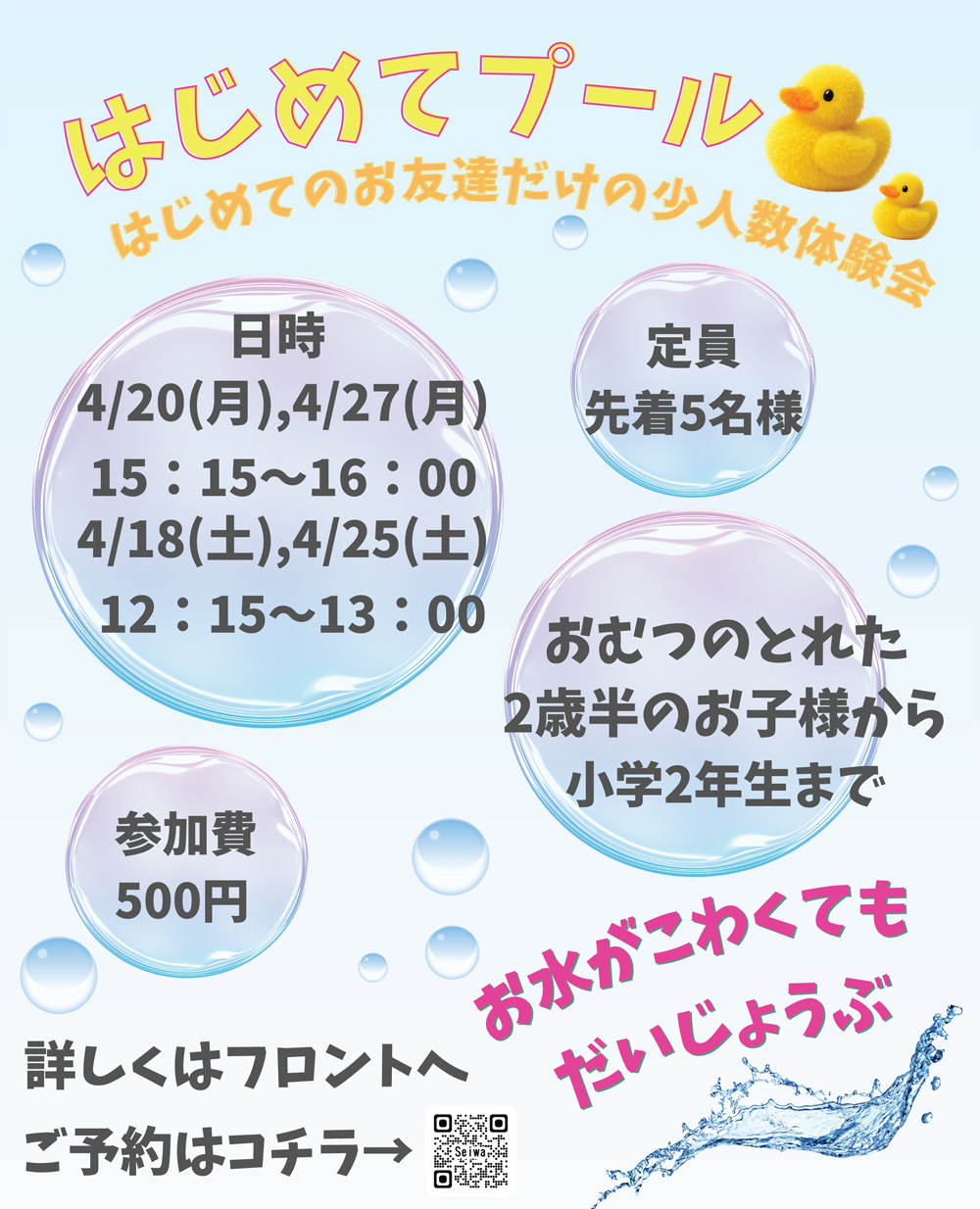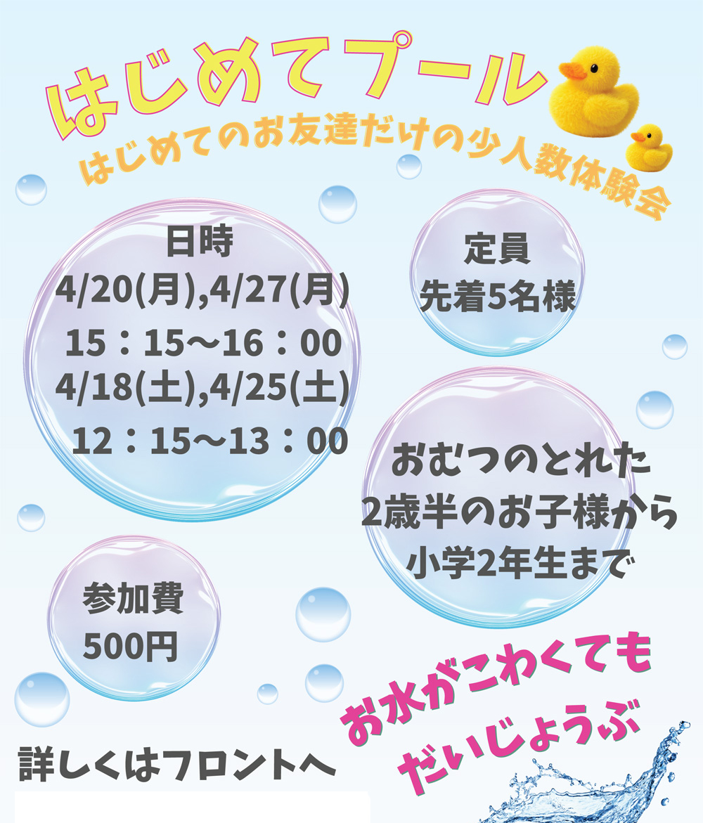 ◎春休み短期水泳教室のお知らせ