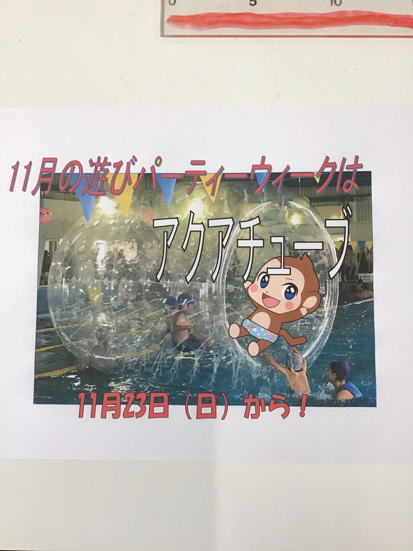 11月23日(日)〜29日(土)の期間はアクアチューブで遊びます。
